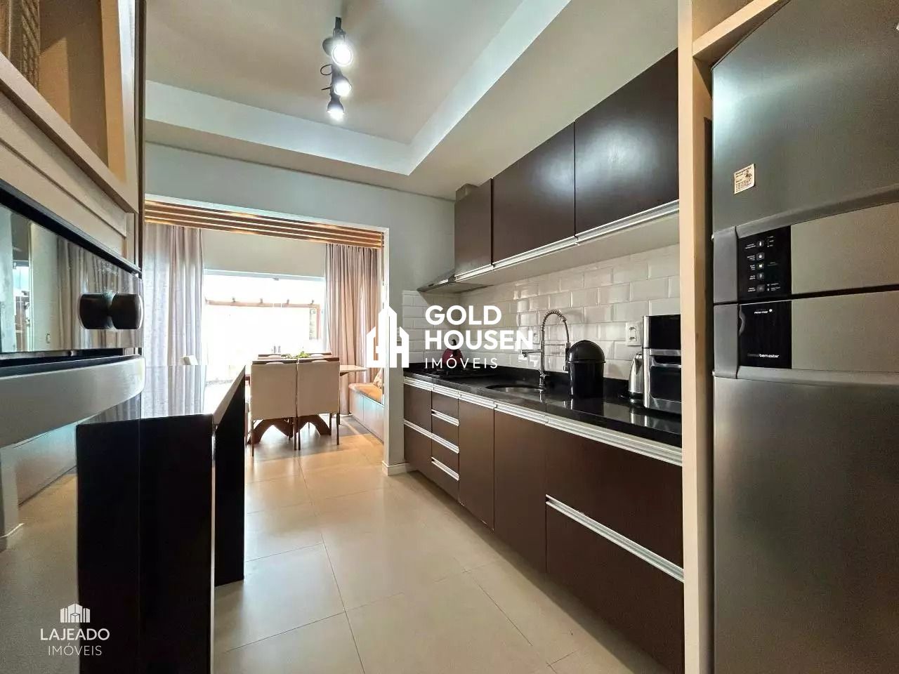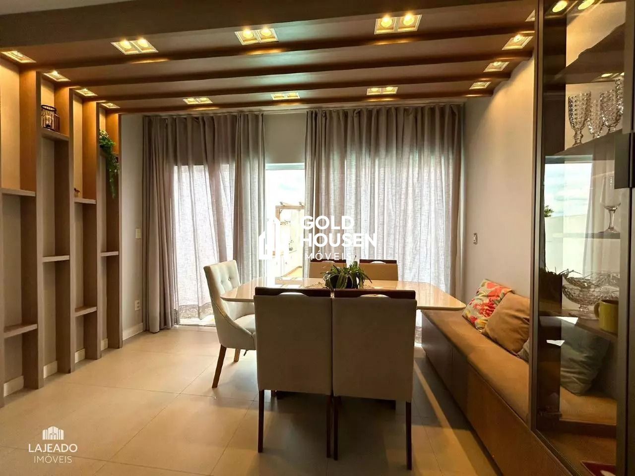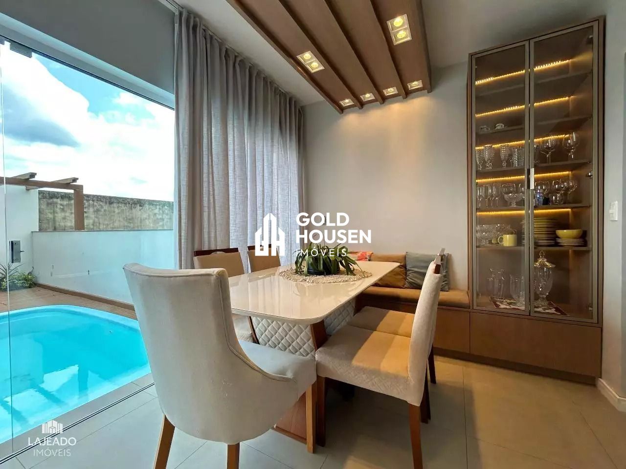 Possui 3 dormitórios sendo 1 suíte, sala de estar e jantar, cozinha sob medida, 3 splits, área de serviço, 1 lavabo, varanda fechada com vidro, churrasqueira, deck com piscina, pátio com pergolado e 2 vagas de garagem.