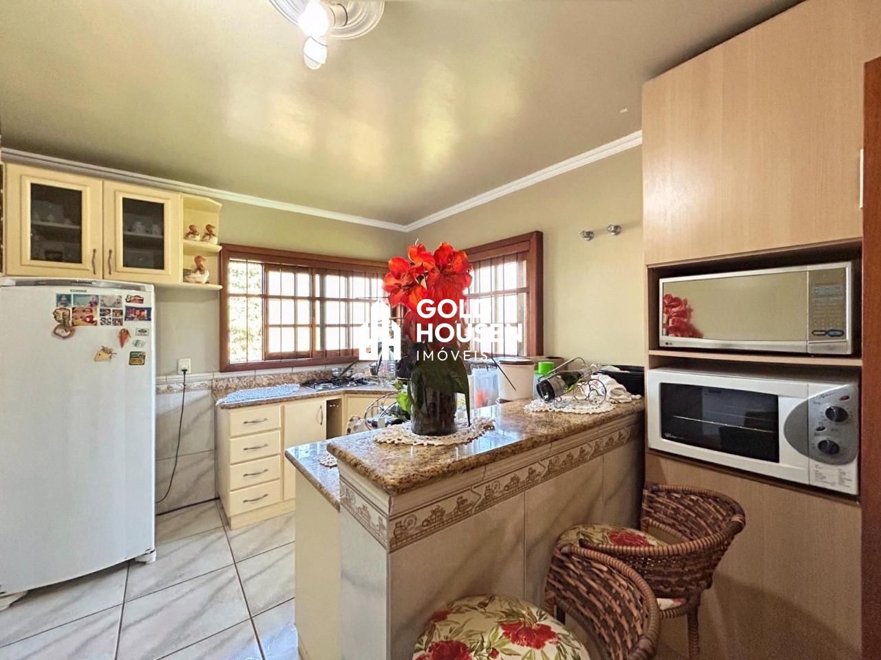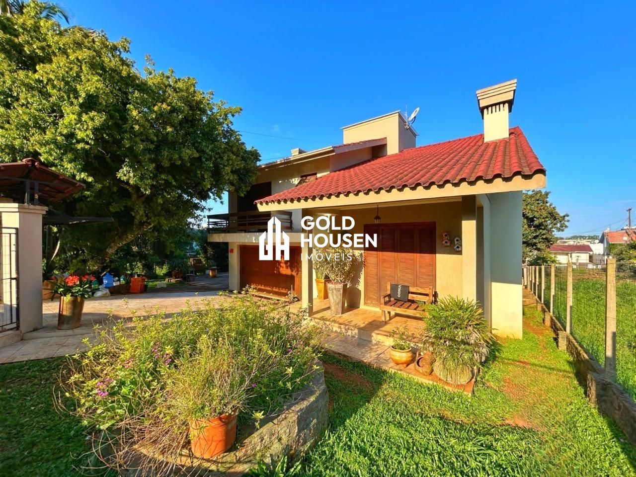 Possui 3 dormitórios sendo 1 suíte com banheira, sala de estar e jantar, lareira, ampla cozinha, área de serviço, 1 banheiro social, amplo pátio, piscina, quiosque com churrasqueira, área verde, canil e 2 vagas de garagem.